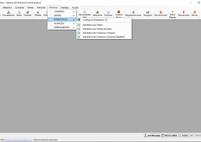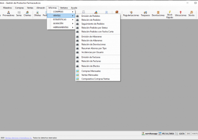 Desde finales del año 2015 Servitux Servicios Informáticos S.L ha venido trabajando y desarrollando una aplicación cuyo objetivo principal fuera optimizar la gestión del trabajo del distribuidor farmacéutico. El proyecto sienta las bases de una herramienta versátil, rápida y eficaz con la que realizar un trabajo de gestión de compras, ventas y almacén, aumentando la eficacia y optimización del tiempo del profesional. Servitux Servicios Informáticos S.L presenta con todo orgullo su producto de distribución farmaceutica, el cual ha sido validado y cumple los requerimientos de la industria farmaceutica en BDPS.